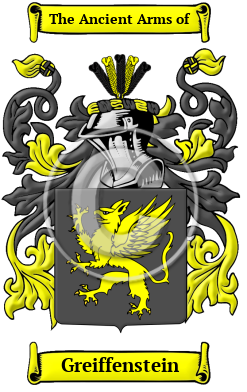 The surname Greiffenstein was first found in Bavaria, where the name Greif was anciently associated with the tribal conflicts of the area. They declared allegiances to many nobles and princes of early history, lending their influence in struggles for power and status within the region. They branched into many houses, and their contributions were sought by many leaders in their search for power.