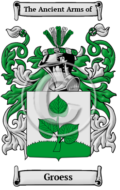 The surname Groess was first found in Bavaria, where this family name became a prominent contributor to the development of the district from ancient times. Always prominent in social affairs, the name became an integral part of that turbulent region as it emerged to form alliances with other families within the Feudal System and the nation. Guenther Gross, founder of the Bavarian line von Trockau, appeared as early as 1097, when he fought under Gottfried von Bouillon against the infidels; after his period of service he settled in Franconia.