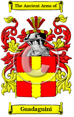 | Guadagnini History, Family Crest & Coats of Arms Early Origins of the Guadagnini familyThe surname Guadagnini was first found in Florence (Italian: Firenze), originally the capital of Tuscany, then capital of the kingdom of Italy. On the River Arno there are numerous Florentine Churches, Museums, Galleries. It dates back to 313 A.D. The history is complex and turbulent. The de' Medici family are the notables. They were expelled in 1494 but they returned in 1512, out in 1527 and then returned. The Gaudagni family history commences in the 12th century in Florence where it was spelt Guadagno. In 1204 the Guadagno of Guittone was Governor of the Republic. In those ancient times only persons of rank, the podesta, clergy, city officials, army officers, artists, landowners were entered into the records. To be recorded at this time, at the beginning of recorded history, was of itself a great distinction and indicative of noble ancestry. Early History of the Guadagnini familyThis web page shows only a small excerpt of our Guadagnini research. Another 92 words (7 lines of text) covering the years 1409, 1725, 1731, 1750, 1786 and 1792 are included under the topic Early Guadagnini History in all our PDF Extended History products and printed products wherever possible. Guadagnini Spelling VariationsEnormous variation in spelling and form characterizes those Italian names that originated in the medieval era. This is caused by two main factors: regional tradition, and inaccuracies in the recording process. Before the last few hundred years, scribes spelled names according to their sounds. Spelling variations were the unsurprising result. The variations of Guadagnini include Guadagno, Guadini, Guadinni, Guadagni, Guadiana, Guadiani, Guadagna, Guadagnin, Guadgnola and many more. Early Notables of the Guadagnini family- Bernardo Guadagni was Bishop of Arezzo and then Cardinal of the city in 1731. Gaetano Guadagni of Lodi was a famous contralto who lived in London, Paris, Vienna, and Munich before finally retiring to...