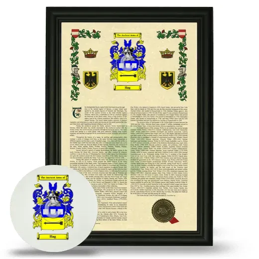 • Our most popular product, the Armorial, in a wooden Black Frame with an 8" Round Mouse Pad