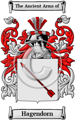 The surname Hagendorn was first found in northern Germany, where it was a prominent contributor to the development of the district from ancient times. The roots of the Hagendorn family have been traced back to the regions of Brunswick and Schleswig-Holstein, where the earliest records of the name have been found. The first recorded bearer of the name was Johann Haghedorn, who lived in Lübeck in 1325.