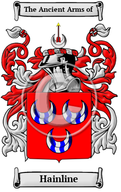 | Hainline History, Family Crest & Coats of Arms Etymology of HainlineWhat does the name Hainline mean? The ancient Anglo-Saxon surname Hainline came from the baptismal name for Haine. As the naming tradition grew in Europe baptismal names began to be introduced in many countries. Baptismal names were sometimes given in honour of Christian saints and other biblical figures. There are very few Christian countries in Europe that did not adopt surnames from these religious figures. Alternatively, the name could have been a local name from Haynes or Hawnes, a parish, in the union of Ampthill, hundred of Flitt in Bedfordshire. 1 This parish dates back to the Domesday Book of 1086 when it was recorded as Hagenes. 2 It literally meant "the enclosures." 3 Another source claims the name is from Haisne, near Arras, France. 4 Early Origins of the Hainline familyThe surname Hainline was first found in the Domesday Book of 1086 where Hagene and Hagana were listed in Herefordshire and Norfolk respectively. 2 From this early listing, the name evolved and was used as both a forename and surname, as Hagena Jugement was listed in the Pipe Rolls for Suffolk in 1130. It was not until 1198 that we found the name as a surname: Rogerus filius Hane in the Feet of Fines for Norfolk. The same rolls, but for Staffordshire listed Hagan(us) in 1199 and later in Norfolk in 1240. Alicia filia Hahen was listed in the Feet of Fines for Norfolk in 1202 which is very interesting as this would have been one of the first entries for a female or "daughter" to hold lands. 5 Hugh de Haynes witnessed a charter of Payen de Beauchamp, founding Chicksand Priory, 12th century 4 Adam filius Hayne was listed in the Subsidy Rolls for Lancashire in 1332 and Peter Hain was found in the Pipe Rolls for Dorset in 1200. 5 Somerset was an early homestead for the family as seen by the following early entries: Ralph Hayne; William Hayne; Alice Heynes; Walter Heynes; and Ade Heynes. All entries were 1 Edward III (during the first year of King Edward III's reign.) 6 The Yorkshire Poll Rolls of 1379 included: Adam Hauneson; Johannes Hayne; Robertus Haynson; and Thomas Hane as all holding lands there at that time. 7 Early History of the Hainline familyThis web page shows only a small excerpt of our Hainline research. Another 63 words (4 lines of text) covering the years 1202, 1552, 1564, 1582, 1594, 1631, 1645, 1653, 1659, 1668, 1671, 1672, 1675, 1690, 1693, 1696, 1697, 1701, 1702, 1705, 1710, 1723, 1737, 1749 and 1752 are included under the topic Early Hainline History in all our PDF Extended History products and printed products wherever possible. Hainline Spelling VariationsSound was what guided spelling in the essentially pre-literate Middle Ages, so one person's name was often recorded under several variations during a single lifetime. Also, before the advent of the printing press and the first dictionaries, the English language was not standardized. Therefore, spelling variations were common, even among the names of the most literate people. Known variations of the Hainline family name include Haines, Hains, Hain, Haine, Haynes, Hainson and many more. Early Notables of the Hainline familyJohn Haynes (sometimes spelled Haines) (1594-1653), English colonial magistrate from Messing Essex, one of the founders of the Connecticut Colony, he was on the committee that drafted the Fundamental Orders of Connecticut, often referred to as one of the first written constitutions