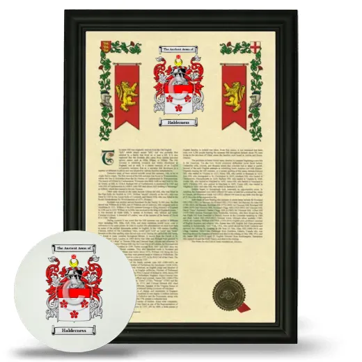 • Our most popular product, the Armorial, in a wooden Black Frame with an 8" Round Mouse Pad