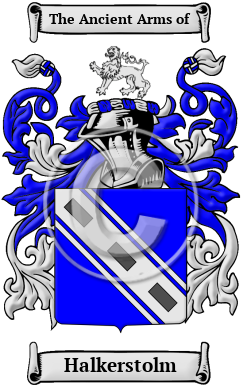 | Halkerstolm History, Family Crest & Coats of Arms Early Origins and Etymology of HalkerstolmThe surname Halkerstolm was first found in Northumberland at Haggerston, a township, in the parochial chapelry of Ancroft, union of Berwick-upon-Tweed, Islandshire. The place name was listed as Agardeston in 1196 and literally meant "estate of a family called Hagard," from the Middle English or Old French surname + "tun." 1 The earliest record of the surname was "Robert de Hagrestone, Lord of Hagreston in 1399, although a Robert de Hagardeston occurs in 1312. It has been supposed that this family is of Scottish extraction." 2 Another reference states: "This place, which contains a number of scattered houses, gave name to a family by whom it was held at a very early period, and of whom Thomas Haggerston was colonel of the famous Northumberland regiment in the service of Charles I., and was created a Baronet by that king in 1643. Haggerston Castle is an old family mansion, built on the site of a more ancient castle, which was burnt down in 1618. " 3 The original Haggerston Castle was in fact first mentioned on this site in 1311 when Edward II visited the castle and again in 1345. It was granted a licence (1343-1334) to crenellate by Edward III. There is another local named Haggerston, now a place in the London Borough of Hackney, but this local has no relationship with the surname. Early History of the Halkerstolm familyThis web page shows only a small excerpt of our Halkerstolm research. Another 89 words (6 lines of text) covering the years 1250, 1296, 1312, 1642, 1679, 1680, 1785 and 1805 are included under the topic Early Halkerstolm History in all our PDF Extended History products and printed products wherever possible. Halkerstolm Spelling VariationsDuring the era when a person's name, tribe and posterity was one of his most important possessions, many different spellings were found in the archives examined. Halkerstolm occurred in many references, and spelling variations of the name found included Haggerston, Hagreston, Halkerston, Halkerstone, Hawkerston, Haxton, Hackston and many more. Early Notables of the Halkerstolm familyRobert Haggerston, Lord of Haggerston in the year 1312; and the infamous David Hackston or Halkerstone (died 1680), a militant Scottish Covenanter, remembered mainly for his part in the murder of Archbishop James Sharp of St. Andrews in 1679.