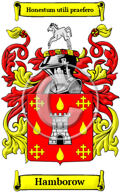 | Hamborow History, Family Crest & Coats of Arms Etymology of HamborowWhat does the name Hamborow mean? The ancestry of the name Hamborow dates from the ancient Anglo-Saxon culture of Britain. It comes from when the family lived in the parish of Hanbury in the county of Oxford. 1 Henry de Hambury (fl. 1330), was an early English judge, the a son of Geoffrey de Hambury of Hambury or Hanbury in Worcestershire. 2 He was being briefly Lord Chief Justice of Ireland. Early Origins of the Hamborow familyThe surname Hamborow was first found in Oxfordshire and Gloucestershire, where evidence suggests they held a family seat before the Norman Conquest. Hambrook is a village and hamlet in the parish of Winterbourne, South Gloucestershire. Whereras, Handbrough is a parish, in the union of Witney, hundred of Wootton in the county of Oxford. Both villages have remained small through the ages. Hambrook had about 600 inhabitants and Handbrough (Hanborough) had about 1,000 inhabitants as of a census in the late 1800s. The latter villages dates back to at least the Domesday Book where it was listed as Haneberge 3 and literally meant "hill of a man called Hagena or Hana" derived from the Old English personal name + beorg. Hambrook also dates back to the Domesday Book where it was listed as Hanbroc. 3 In this case, the village literally meant "brook by the stone" from the Old English han + broc. 4 Early History of the Hamborow familyThis web page shows only a small excerpt of our Hamborow research. Another 153 words (11 lines of text) covering the years 1086, 1273 and 1330 are included under the topic Early Hamborow History in all our PDF Extended History products and printed products wherever possible. Hamborow Spelling VariationsSpelling variations in names were a common occurrence before English spelling was standardized a few hundred years ago. In the Middle Ages, even the literate spelled their names differently as the English language incorporated elements of French, Latin, and other European languages. Many variations of the name Hamborow have been found, including Hambro, Hambrow, Hambury, Hamborough, Hamboro and others. Early Notables of the Hamborow familyAnother 43 words (3 lines of text) are included under the topic Early Hamborow Notables in all our PDF Extended History products and printed products wherever possible. Migration of the Hamborow family to IrelandSome of the Hamborow family moved to Ireland, but this topic is not covered in this excerpt. More information about their life in Ireland is included in all our PDF Extended History products and printed products wherever possible. Migration of the Hamborow familyFamilies began migrating abroad in enormous numbers because of the political and religious discontent in England. Often faced with persecution and starvation in England, the possibilities of the New World attracted many English people. Although the ocean trips took many lives, those who did get to North America were instrumental in building the necessary groundwork for what would become for new powerful nations. Some of the first immigrants to cross the Atlantic and come to North America bore the name Hamborow, or a variant listed above: Daniel Hanbury who sailed to Massachusetts in 1635; Peter Hanbury to Virginia in 1639; Peter Hambro, to Philadelphia, Pa. in 1750; Benjamin Hambury to Virginia in 1774.