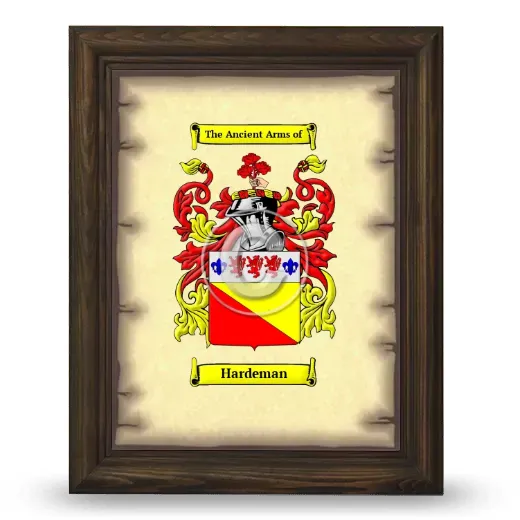 A classic solid wood brown frame with a Coat of Arms and Family Crest most commonly associated with your family's surname. Includes family crest and motto where available!