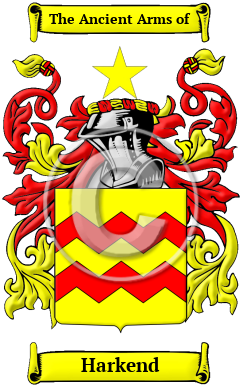 The surname Harkend was first found in at Inishowen, in County Donegal where members of the family were erenaghs of Clonska, a parish near Malin Head. They are mentioned as such in Bishop Montgomery's diocesan survey of 1606. Danieal O'Harcan died in 1581 as a Catholic martyr in Ulster.