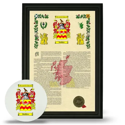 • Our most popular product, the Armorial, in a wooden Black Frame with an 8" Round Mouse Pad