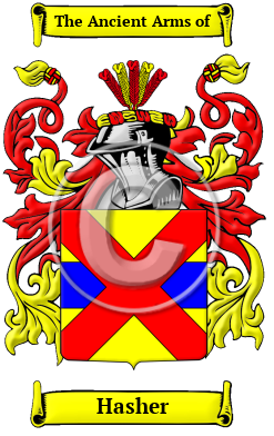 England Etymology of HasherWhat does the name Hasher mean? The name Hasher reached England in the great wave of migration following the Norman Conquest of 1066. It is based on the name of an ancestor as in 'the son of Asset.' "Asser was an ancient personal name, as Asserius Menevensis, the preceptor of King Alfred. Two tenants called Azor are found in Domesday [Book]. " 1 Early Origins of the Hasher familyThe surname Hasher was first found in Dorset, England where the first record of the name was Asser (without surname) (d. 909), Bishop of Sherborne and author of the 'Life of Ælfred the Great.' He was a monk of St. David's (Menevia), and related to Bishop Novis of that see. "Like Grimbald and John, 'the Old Saxon,' Asser, who had a high reputation for learning, was invited by Alfred about 885 to enter his household. He appears to have been encouraged to accept the invitation by his fellow-monks, who had recently suffered from the hostility of Hemeid, king of South Wales, and hoped to secure, through Asser, Ælfred's protection. Asser's 'Life of Ælfred ' ('De Rebus gestis Æfredi Magni') consists of (1) a chronicle of English history between 849 and 887, largely drawn from an early version of the Anglo-Saxon Chronicle, and (2) a personal and original narrative of Ælfred's career down to 887. " 2 Another source confirms this record but in a slightly different manner: "Plympton Priory was one of the most ancient and notable religious houses in Devon. The canons who held two hides of the Plintona manor under William, were the successors of men who had been seated there in all probability for a longer period than any other religious in Devon outside Exeter. There is yet extant a copy of a Saxon document of reasonable authenticity, dated 904, which records a grant by Eadweard the Elder to Asser, Bishop of Sherborne, and the convent there, of twelve manors, by way of exchange for the monastery which in the Saxon tongue is called 'Plymentun.' " 3 According to "History and Ant. St. David's" there were two more possibly related men of the cloth in early times: Asser (without surname), canon of St. David's, 1202; and John ap-Asser, canon of St. David's, 1218. 4 From this last entry, the surnames Passer and Pasher are derived. Less than sixty years later, the Hundredorum Rolls of 1273 listed William Ascer in Lincolnshire and Robert Asser in Derbyshire. 4 The "Placita de Quo Warranto, temp. Edward I-III." listed Jordan Asser, in Northamptonshire, 20 Edward I (in the 20th year of Edward I's reign.) 4 A William Asser, was rector of Aylmerton, Norfolk. 5 Early History of the Hasher familyThis web page shows only a small excerpt of our Hasher research. Another 156 words (11 lines of text) covering the years 1275, 1510, 1600, 1653, 1671 and 1756 are included under the topic Early Hasher History in all our PDF Extended History products and printed products wherever possible. Hasher Spelling VariationsThe English language only became standardized in the last few centuries. For that reason, spelling variations are common among many Anglo-Norman names. The shape of the English language was frequently changed with the introduction of elements of Norman French, Latin, and other European languages; even the spelling of literate people's names were subsequently modified. Hasher has been recorded under many different variations, including Asher, Ascher, Asser, Hasher, Hasser, Hascher, Aschey, Aisher, Aza, Azor, Ascer, Passer and many more. Early Notables of the Hasher familyMore information is included under the topic Early Hasher Notables in all our PDF Extended History products and printed products wherever possible.