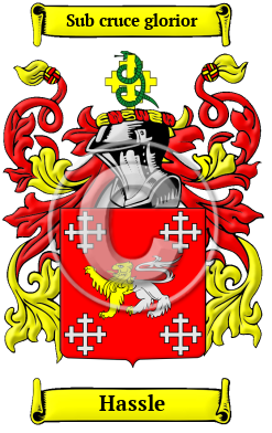 England Early Origins of the Hassle familyThe surname Hassle was first found in Northamptonshire at Astwell, a hamlet, partly in the parish of Syresham, but chiefly in the parish of Wapenham, union of Brackley; hundred of King's Sutton. 1 2 While this is the prevailing origin of the name, another credible source notes that the name could have a patronymic name "derived from the name of an ancestor. 'the son of Asketel,' one of the many corruptions of this early and popular name. " 3 Indeed the earliest listings of the family were as both a forename and a surname. The Hundredorum Rolls of 1273 list: Astill filius Wilfriche, Oxfordshire; Astell Propositus, Oxfordshire; William Astil, Oxfordshire; Peter Askyl, Cambridgeshire; Alan Askil, Cambridgeshire; Stephen Astel, Cambridgeshire; and Simon Astil, Buckinghamshire. 3 The History of Norfolk listed Hugh Astel, as rector of Aylmerton, Norfolk, 1371; and Nicholas Astell, as vicar of Stradset, Norfolk, 1450. 4 We would be remiss if we did not mention the Cornish branch of the family. St, Austell was their home, a parish, which is situated in the east division of the hundred of Powder. "There are few parishes in Cornwall, on the origin of whose name more doubts have been entertained. From this place was denominated an old family of gentlemen, De Austell, of which family William de Austell was sheriff of Cornwall in the reign of Edward III. which was prior to the middle of the fourteenth century. His grandson John de Austell was also sheriff of the county in the twenty-fifth of Henry VI. ; and in the two following years he enjoyed the same honours for Somerset and Dorset." 5 Early History of the Hassle familyThis web page shows only a small excerpt of our Hassle research. Another 178 words (13 lines of text) covering the years 1225, 1349, 1379, 1532, 1641, 1668, 1675, 1697, 1714, 1722, 1731, 1735, 1800, 1807, 1841 and 1847 are included under the topic Early Hassle History in all our PDF Extended History products and printed products wherever possible. Hassle Spelling VariationsThe English language only became standardized in the last few centuries; therefore,spelling variations are common among early Anglo-Saxon names. As the form of the English language changed, even the spelling of literate people's names evolved. Hassle has been recorded under many different variations, including Astell, Astel, Astill, Astil, Asstel, Asstil, Asthul, Asthule, Astle, Atsell and many more. Early Notables of the Hassle familySir Henry Hatsell (1641-1714), English judge, son of Henry Hatsell of Saltram, in the parish of Plympton St. Mary, Devonshire. 6