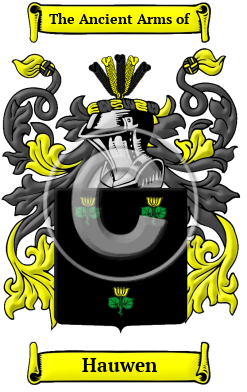 The surname Hauwen was first found in Belgium, where the name became noted for its many branches in the region, each house acquiring a status and influence which was envied by the princes of the region. The name was first recorded in East Flanders, a province in Belgium. Within this province the notable towns are Ghent, the capital city, St Nicolas, Alost, Termonde and Oudenarde. In their later history the surname became a power unto themselves and were elevated to the ranks of nobility as they grew into a most influential family.