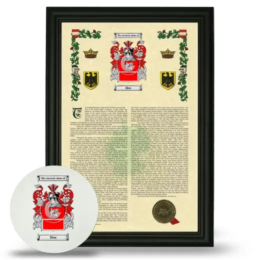 • Our most popular product, the Armorial, in a wooden Black Frame with an 8" Round Mouse Pad