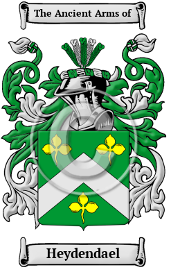 Belgium Early Origins of the Heydendael familyThe surname Heydendael was first found in Belgium, where the name became noted for its many branches in the region, each house acquiring a status and influence which was envied by the princes of the region. The name was first recorded in East Flanders, a province in Belgium. Within this province the notable towns are Ghent, the capital city, St Nicolas, Alost, Termonde and Oudenarde. In their later history the surname became a power unto themselves and were elevated to the ranks of nobility as they grew into a most influential family. In nearby Germany, another branch of the family dates back to the late 15th century with Sebald Heyden (1499-1561), a German musicologist, educator and hymn writer. He was a member of the Haiden family (also spelt Heyden, Heiden, Hayden, Heyd), a prominent German family of musicians, musical instrument makers, and copper merchants. Early History of the Heydendael familyThis web page shows only a small excerpt of our Heydendael research. Another 100 words (7 lines of text) covering the years 1637, 1649, 1664, 1712, 1822 and 1870 are included under the topic Early Heydendael History in all our PDF Extended History products and printed products wherever possible. Heydendael Spelling VariationsSpelling variations of this family name include: Heyden, Heydel, Heydenab, Heydenberg, Heydin, Heydon, Heydendael, Heydenreich, Heydenryck, Heyder, Heyderer, Heydern, Heydens, Heydenaur, Addenaur and many more. Early Notables of the Heydendael familyMore information is included under the topic Early Heydendael Notables in all our PDF Extended History products and printed products wherever possible. Migration of the Heydendael familySome of the first settlers of this family name or some of its variants were: Edw. Heyden, who came to Virginia in 1622; Carl Heyden, who came to Quebec, Canada in 1858; Charles Heyden, whose Oath of Allegiance was recorded in Indiana in 1850.