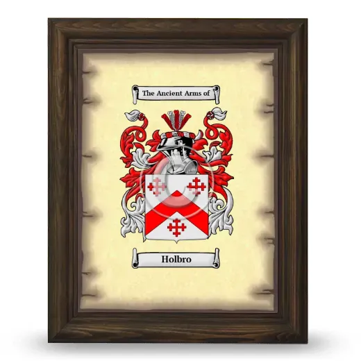 A classic solid wood brown frame with a Coat of Arms and Family Crest most commonly associated with your family's surname. Includes family crest and motto where available!