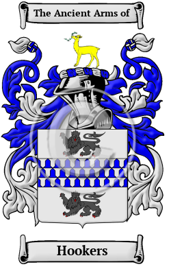 | Hookers History, Family Crest & Coats of Arms Etymology of HookersWhat does the name Hookers mean? The name Hookers finds its origins with the ancient Anglo-Saxons of England. It was given to one who worked as a person who made hooks or an agricultural worker who used hooks. The name Hookers was also applied to someone who lived near a bend or hill-spur. The surname Hookers is derived from the Old English word hoc, which means hook. 1 "The original name of the family was Vowell, but in the fifteenth century members of it called themselves Vowell alias Hooker or Hoker, and in the sixteenth century the original name was generally dropped." 2 One other source confirms this name change, but it should be noted that only one branch did so. "The original name was Vowell or Fowell, and the family had been seated at Fowelscombe t. Henry IV. or earlier; and a younger son marrying an heiress assumed the name of Hooker." 3 Early Origins of the Hookers familyThe surname Hookers was first found in the source Liber Elienis where Osmundus cognomento Hocere was recorded c. 975. From this earliest entry in Latin and in Saxon times, we move to Norfolk where William, Osbert Hoker(e) was found in the Pipe Rolls of 1199, and later in the Assize Rolls for Lincolnshire in 1219. John le Hoker, le Houker was found in the Subsidy Rolls for Sussex in 1327 and 1332. 4 The Hundredorum Rolls of 1273 revealed Robert le Hoker, Kent; and Hugh Hoker, Norfolk. 5 Early History of the Hookers familyThis web page shows only a small excerpt of our Hookers research. Another 82 words (6 lines of text) covering the years 1199, 1490, 1493, 1526, 1529, 1537, 1553, 1554, 1558, 1586, 1600, 1601 and 1647 are included under the topic Early Hookers History in all our PDF Extended History products and printed products wherever possible. Hookers Spelling VariationsThe English language only became standardized in the last few centuries; therefore, spelling variations are common among early Anglo-Saxon names. As the form of the English language changed, even the spelling of literate people's names evolved. Hookers has been recorded under many different variations, including Hooker, Hookers and others. Early Notables of the Hookers familyJohn Hooker alias Vowell (1526?-1601), English antiquary and Chamberlain of Exeter, born there in or about 1526, being the second son of Robert Hooker, who was Mayor of Exeter in 1529. 2