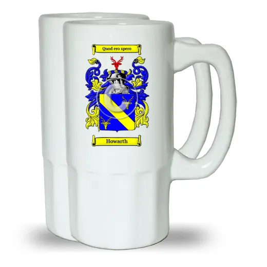 A Set of Two Ceramic Beer Steins, (Same Coat of arms on both Steins)