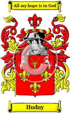 The surname Hudny was first found in Aberdeenshire (Gaelic: Siorrachd Obar Dheathain), a historic county, and present day Council Area of Aberdeen, located in the Grampian region of northeastern Scotland, where they held a family seat from very ancient times, in the barony and parish of Udney.