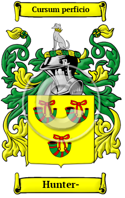 | Hunter- History, Family Crest & Coats of Arms Etymology of Hunter-What does the name Hunter- mean? Hunter- comes from the kingdom of Dalriada in ancient Scotland. It was a name for a person who worked as a hunter or someone involved in the chase.This name is derived the Latin word venator. 1 2 Early Origins of the Hunter- familyThe surname Hunter- was first found in Ayrshire (Gaelic: Siorrachd Inbhir Àir), formerly a county in the southwestern Strathclyde region of Scotland, that today makes up the Council Areas of South, East, and North Ayrshire. But while Scottish history places them in this area, we must remember that before the 5th century this Clan, held a family seat at Hy Seaain counties Derry and Tyrone, in Ireland, and were chiefs who calimes descent from King Colla da Crioch. Moving to Scotland about the 5th or 6th century they were granted lands by the Grahams at Polmood. "William venator, who was one of the witnesses to the Inquisition of Earl David, before 1124, is apparently the first of the name recorded in Scotland. Yone Venatore was one of the witnesses to a Beauly charter of 1231. Adam Hunter was granted the hereditary office of sergeantry in all causes touching life and limb throughout the abbey land of Crauford belonging to the Abbey of Newbattle before 1259. John the hunter (venator) was one of the jurors on an inquisition made on the lands of Hopkelchoc (now Kailzie) in 1259." 3 "The family have been seated at Hunterston in Ayrshire since the time of Alexander II. They bear three hunting horns vert in their arms, whence probably the name." 4 "The Normans were great preservers and mighty hunters of game, and though the name is Anglo-Saxon (hunta) it is generally considered that the families bearing it are chiefly of Norman origin. Under the Norman and early Scottish kings the office of king's hunter ( Venator Regis) was one of considerable dignity. "The hunters of Polmood in Tweedsmuir pretend to have had a charter of their lands from Graeme, who broke through the Wall of Antoninus in the V. century." 5 Early History of the Hunter- familyThis web page shows only a small excerpt of our Hunter- research. Another 285 words (20 lines of text) covering the years 1124, 1296, 1327, 1328, 1375, 1376, 1547, 1555, 1664, 1666, 1675, 1684, 1701, 1702, 1710, 1718, 1720, 1725, 1728, 1729, 1733, 1734, 1737, 1741, 1742, 1745, 1750, 1753, 1757, 1763, 1771, 1775, 1777, 1780, 1783, 1790, 1793, 1795, 1800, 1809, 1821, 1835, 1837, 1846, 1890 and 1905 are included under the topic Early Hunter- History in all our PDF Extended History products and printed products wherever possible. Hunter- Spelling VariationsHistorical recordings of the name Hunter- include many spelling variations. They are the result of repeated translations of the name from Gaelic to English and inconsistencies in spelling rules. They include Hunter, Hunters and others. Early Notables of the Hunter- family- General Robert Hunter (1664-1734), the colonial Governor of New York and New Jersey from 1710 to 1720, he belonged to the family of Hunter of Hunterston, Ayrshire