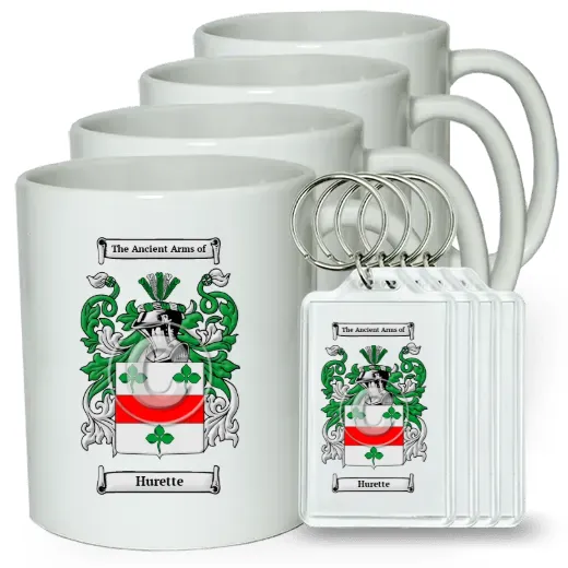 Set of 4 Coffee Mugs and Keychains