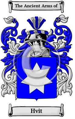 The surname Hvit was first found in Hamburg, where the name contributed greatly to the development of an emerging nation which would later play a large role in the tribal and national conflicts of the area. In later years the name branched into many houses, each playing a significant role in the local social and political affairs. Hvide is also connected to several place names in the Holstein region.