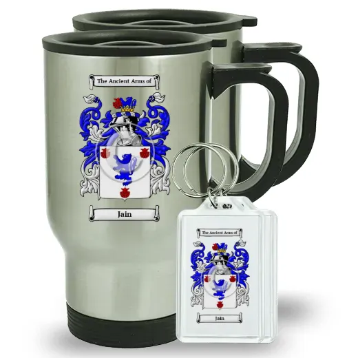 Pair of Travel Mugs and pair of Keychains