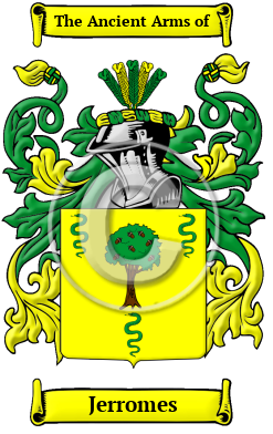 | Jerromes History, Family Crest & Coats of Arms Etymology of JerromesWhat does the name Jerromes mean? The name Jerromes was brought to England in the great wave of migration following the Norman Conquest of 1066. It comes from the Old French given name Jerome, which itself was originally derived from the Greek name Hieronymos. The Greek name was composed of the elements hieros, which means sacred, and onyma, which means name. 1 Early Origins of the Jerromes familyThe surname Jerromes was first found in Berkshire where the first record of the Jerromes family was as an early spelling as a forename, German Curzun who was listed there in 1206. The Curia Regis Rolls also included Jeronimus, Geronimus, Gerarmus de Curzun in Berkshire and Staffordshire (1206-1211.) A few years later, Jerom' de Ponte Burgi was found in the Assize Rolls for Yorkshire in 1219 and later again, Jeronimus de Normaneby was listed in the Pipe Rolls for Lincolnshire in 1230. 2 Early History of the Jerromes familyThis web page shows only a small excerpt of our Jerromes research. Another 58 words (4 lines of text) covering the years 1194, 1604, 1607, 1614, 1619, 1624, 1650, 1729, 1748, 1770 and 1853 are included under the topic Early Jerromes History in all our PDF Extended History products and printed products wherever possible. Jerromes Spelling VariationsA multitude of spelling variations characterize Norman surnames. Many variations occurred because Old and Middle English lacked any definite spelling rules. The introduction of Norman French to England also had a pronounced effect, as did the court languages of Latin and French. Therefore, one person was often referred to by several different spellings in a single lifetime. The various spellings include Jerome, Jerrome, Jerram, Jeran, Jarrom, Jerrems, Gerome, Gerram and many more. Early Notables of the Jerromes familyStephen Jerome (fl. 1604-1650), an English miscellaneous writer, was educated at St. John's College, Cambridge, where he proceeded B.A. in 1604, and M.A. in 1607. In 1619 he was a preacher at St. Nicholas's Church, Newcastle (cf. Ambrose Barnes, Memoirs, p. 305, Surtees Society). Writing from Ireland in 1624, he describes himself as ‘domesticke chaplain to the Rt. Hon. Earl of Corke,’ and in... Another 63 words (4 lines of text) are included under the topic Early Jerromes Notables in all our PDF Extended History products and printed products wherever possible. Migration of the Jerromes family to IrelandSome of the Jerromes family moved to Ireland, but this topic is not covered in this excerpt. More information about their life in Ireland is included in all our PDF Extended History products and printed products wherever possible. Migration of the Jerromes familyMany English families left England, to avoid the chaos of their homeland and migrated to the many British colonies abroad. Although the conditions on the ships were extremely cramped, and some travelers arrived diseased, starving, and destitute, once in the colonies, many of the families prospered and made valuable contributions to the cultures of what would become the United States and Canada. Research into the origins of individual families in North America has revealed records of the immigration of a number of people bearing the name Jerromes or a variant listed above: William Jerome, who sailed to New Orleans in 1820; William Jerroms and Joseph Jerome to New York in 1830; and R.L. Jerome to San Francisco in 1851.