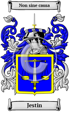 Scotland England Etymology of JestinWhat does the name Jestin mean? As early as c. 1172, this name was used by judicial officers or judges and it is from this source the surname was more than likely derived. While there may have been Norman roots at La Justice in Normandy, the name was more likely an occupational name for someone who held the office of "the justice," in other words a judge. Saint Justus (d. 627), was the fourth Archbishop of Canterbury, sent in 601 from Rome by Pope Gregory along with Laurentius, Mellitus, and others to reinforce the Kentish mission. Justus died on 10 Nov. 627, and was buried in St. Peter's porch at St. Augustine's, Canterbury. 1 Early Origins of the Jestin familyThe surname Jestin was first found in Perthshire (Gaelic: Siorrachd Pheairt) former county in the present day Council Area of Perth and Kinross, located in central Scotland, and Angus where one of the first records of the name was Patrick Justyce as a tenant of the mill at Kelso in 1472. Just two years later, Patrick Justice, a priest who witnessed an instrument of sasine in this shire in 1474. As the forename Patrick was not very popular at this time, these two references may be the same person. The lands of James Justeis and Thomas Justeis are mentioned in Scone in 1491. 2 The variants Jewson and Juson were mostly found further south in England. This illustrious family were originally found in Colchester, Essex where Richard Juwesone, Jullesome, Jullesone was recorded in 1333, 1340 and 1341. 3 It is generally thought the entries were all for the same person. Early History of the Jestin familyThis web page shows only a small excerpt of our Jestin research. Another 140 words (10 lines of text) covering the years 1400, 1450, 1567, 1600, 1673, 1745 and 1778 are included under the topic Early Jestin History in all our PDF Extended History products and printed products wherever possible. Jestin Spelling VariationsSpelling variations of this family name include: Justice, Justine, Justus and others. Early Notables of the Jestin familyMore information is included under the topic Early Jestin Notables in all our PDF Extended History products and printed products wherever possible. Jestin RankingFrance, the name Jestin is the 1,674th most popular surname with an estimated 3,599 people with that name. 4 Migration of the Jestin familySome of the first settlers of this family name or some of its variants were: Henry Justice, who settled in Virginia in 1700; Hugh Justice settled in Virginia in 1723; another Henry Justice settled in Maryland in 1736; Sarah Justice arrived in San Francisco Cal. in 1862.