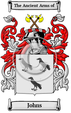 | Johns History, Family Crest & Coats of Arms Etymology of JohnsWhat does the name Johns mean? The distinguished surname Johns is derived from the given name "John," which is itself derived from the Hebrew name "Johanan," meaning "Jehovah has favored." "This baptismal name, which is of Norman introduction, has rarely passed into a surname. The London Directory for 1852 affords but one instance." 1 The name was brought to England in the wake of the Norman Conquest of 1066, and was extremely popular throughout Europe in the Middle Ages as a result of the numerous connections between the name John and the Christian Church. Early Origins of the Johns familyThe surname Johns was first found in Lincolnshire, borne by Alanus filius Jene in 1275. Other early bearers of the name include Willelmus filius Gene, who was recorded in the Rotuli Hundredorum of Yorkshire in 1276, Walterus filius Jone, who was living in Huntingdonshire in 1279, and Thomas John, who was a resident of Buckinghamshire in 1279. 2 In Somerset, Robert Johns, was listed 1 Edward III (during the first year of the reign of King Edward III.) 3 Lewis Johns was prebendary of St. David's in 1486. 4 Farther to the south in the parish of Wendron, Cornwall, we found this interesting entry. "The barton of Tremere, or Trenear, on which are now only some small cottages, is said to have been a place of considerable fame in former ages. This is at present the property of the representatives of the late Richard Johns, Esq. of Helston, by purchase from the Vyvyans. Tonkin speaking of this place says, 'At Trenere in Wendron is an arched vault of moorstone near the house, said to have been a cellar of the ancient Dukes of Cornwall, and this one of their hunting seats. This vault, which is very entire, indicates a place of some distinction.' " 5 Early History of the Johns familyThis web page shows only a small excerpt of our Johns research. Another 104 words (7 lines of text) covering the years 1279, 1327, 1379, 1417, 1463, 1600, 1656, 1664, 1736, 1754, 1776, 1796, 1843, 1858 and 1890 are included under the topic Early Johns History in all our PDF Extended History products and printed products wherever possible. Johns Spelling VariationsA multitude of spelling variations characterize Norman surnames. Many variations occurred because Old and Middle English lacked any definite spelling rules. The introduction of Norman French to England also had a pronounced effect, as did the court languages of Latin and French. Therefore, one person was often referred to by several different spellings in a single lifetime. The various spellings include John, Johns, Jon, Jone, Johnes, Johnys, Joan, Joanes, Jones and many more. Early Notables of the Johns family- Samuel John (1656-1736), was a minister, Henry John (1664-1754), a hymnist from Wales, Ambrose Bowden Johns (1776-1858), a British painter, and David Johns (1796-1843), was a Welsh missionary