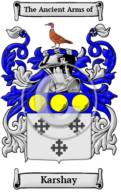 England Etymology of KarshayWhat does the name Karshay mean? The name Karshay is of Anglo-Saxon origin and came from when the family lived in the area of Kirkshaw at Rochdale in the county of Lancashire. Karshay is a topographic surname, which was given to a person who resided near a physical feature such as a hill, stream, church, or type of tree. Habitation names form the other broad category of surnames that were derived from place-names. They were derived from pre-existing names for towns, villages, parishes, or farmsteads. Other local names are derived from the names of houses, manors, estates, regions, and entire counties. Early Origins of the Karshay familyThe surname Karshay was first found in Lancashire where it is a local name 'of Kirkshaw,' in the parish of Rochdale. Literally the place name means "church-wood." Some of the earliest records of the name include: Matthew de Kyrkshagh, Lancashire in 1281; Geoffrey del Kyrkeshagh, of Rochdale parish in 1390; and John de Kyrkshagh, or Kershaw, of Townhouses, in Rochdale, 1424. 1 Early History of the Karshay familyThis web page shows only a small excerpt of our Karshay research. Another 97 words (7 lines of text) covering the years 1379, 1572, 1617 and 1630 are included under the topic Early Karshay History in all our PDF Extended History products and printed products wherever possible. Karshay Spelling VariationsIt is only in the last few hundred years that the English language has been standardized. For that reason, early Anglo-Saxon surnames like Karshay are characterized by many spelling variations. As the English language changed and incorporated elements of other European languages, even literate people changed the spelling of their names. Scribes and monks in the Middle Ages spelled names they sounded, so it is common to find several variations that refer to a single person. The variations of the name Karshay include: Kershaw, Kercher, Kershow, Kirshaw, Kirkshaw and others. Early Notables of the Karshay familyMore information is included under the topic Early Karshay Notables in all our PDF Extended History products and printed products wherever possible. Migration of the Karshay familyMany English families tired of political and religious strife left Britain for the new colonies in North America. Although the trip itself offered no relief - conditions on the ships were extremely cramped, and many travelers arrived diseased, starving, and destitute - these immigrants believed the opportunities that awaited them were worth the risks. Once in the colonies, many of the families did indeed prosper and, in turn, made significant contributions to the culture and economies of the growing colonies. An inquiry into the early roots of North American families has revealed a number of immigrants bearing the name Karshay or a variant listed above: Ralph Kershaw settled in Virginia in 1699; Edmund, Frederick, James, Jesse, John, Lees, Nelson, Napoleon, Robert, Samuel, Thomas and William Kershaw all arrived in Philadelphia between 1800 and 1870..