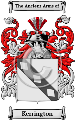 | Kerrington History, Family Crest & Coats of Arms Etymology of KerringtonWhat does the name Kerrington mean? The name Kerrington is of Anglo-Saxon origin and came from when the family lived at Carenton, a port town, and Chateau in Normandy. 1 It is thought that the first of the name in Britain was Norman Hamo de Carenton of Normandy, who came to Britain as a young attendant to his uncle at Hastings in 1066 A.D., and was rewarded for his services by grants of land in county of Chester. Carrington, or Primrose is a parish in Edinburghshire, Scotland containing with the villages of Thornton and Whitefaugh and Carrington. 2 Early Origins of the Kerrington familyThe surname Kerrington was first found in Cheshire at Carrington, a township and chapelry, in the parish of Bowdon, union of Altrincham, hundred of Bucklow. "The manor was held for more than three centuries by a family of the same name." 3 "A moiety of the manor [at Ashton upon Mersey] was held for many generations by the Carringtons, and passed by a female heir of that family to the Booths." 3 There are two other places named Carrington in Britain: in Lincolnshire which was "first recorded in 1812, and named after Robert Smith, Lord Carrington (1752-1838), who had lands there"; 4 and in Nottinghamshire where "this village, which is of recent origin, consists partly of handsome villas, occupied by merchants and lace manufacturers, who have warehouses in Nottingham." 3 Now part of Greater Manchester, Carrington dates back to the 12th century when it was first listed as Carrintona and possibly meant "estate associated with a man called Cara," from the Old English personal name + "-ing" + "tun." 4 Some of the first record of the family include: Thomas de Karington who was listed in the Assize Rolls of Lancashire in 1219; and John de Carrington found in the Assize Rolls for Cheshire in 1294. 5 In Scotland, the name came from the "lands of Carrington in East Lothian. Wautier de Keringtone, parson of the church of Dunnotre, rendered homage in 1296 [to King Edward I of England]." 6 Early History of the Kerrington familyThis web page shows only a small excerpt of our Kerrington research. Another 115 words (8 lines of text) covering the years 1180, 1219, 1294, 1296, 1796 and 1868 are included under the topic Early Kerrington History in all our PDF Extended History products and printed products wherever possible. Kerrington Spelling VariationsIt is only in the last few hundred years that the English language has been standardized. For that reason, early Anglo-Saxon surnames like Kerrington are characterized by many spelling variations. As the English language changed and incorporated elements of other European languages, even literate people changed the spelling of their names. Scribes and monks in the Middle Ages spelled names they sounded, so it is common to find several variations that refer to a single person. The variations of the name Kerrington include: Carrington, Carington, Kerrington, Karrington, Kerington, Carinton and many more. Early Notables of the Kerrington familyAnother 35 words (2 lines of text) are included under the topic Early Kerrington Notables in all our PDF Extended History products and printed products wherever possible. Migration of the Kerrington familyMany English families tired of political and religious strife left Britain for the new colonies in North America. Although the trip itself offered no relief - conditions on the ships were extremely cramped, and many travelers arrived diseased, starving, and destitute - these immigrants believed the opportunities that awaited them were worth the risks. Once in the colonies, many of the families did indeed prosper and, in turn, made significant contributions to the culture and economies of the growing colonies. An inquiry into the early roots of North American families has revealed a number of immigrants bearing the name Kerrington or a variant listed above: Michael Carrington who settled in Virginia in 1652 with his brother Samuel; Thomas Carrington settled in New England in 1632; Edward Carrington settled in Boston Massachusetts in 1632.