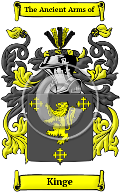 | Kinge History, Family Crest & Coats of Arms Etymology of KingeWhat does the name Kinge mean? Kinge is a name whose history is entwined with the ancient Anglo-Saxon tribes of Britain. It was a name for a person who lived and acted like a king. It is derived from the Old English cyning or cyng, meaning "king," and was probably first bestowed as a nickname upon someone who was kingly in personality or appearance, or perhaps to someone who had played the king in a pageant. As one source notes, it is curious that the name "Queen" is not as popular as it should be given the similar importance of the title in ancient times. 1 Early Origins of the Kinge familyThe surname Kinge was first found in Devon, where the name was first found about 1050. 2 Geoffrey King brought the name to Cheshire in 1177 and by 1273 John King had established lands and estates in the county of Norfolk as evidenced by John le Kyng who was listed in the Hundredorum Rolls of Norfolk at that time. The Hundredorum Rolls also lists Walter le Kyng in Cambridgeshire. 1 Regional distribution of the name is interesting. "Mostly confined south of a line drawn from the Wash to the southern border of Shropshire. North of this line the name rapidly diminishes in frequency, being absent from my list in nearly all the counties thus marked off. It is rare also in the extreme south - west, in Devon and Cornwall. It is best represented in Beds, Bucks, Suffolk, and Wilts. The name is sparingly represented in Scotland." 3 In Scotland, it was "a surname of some antiquity and still met with in many parts of the country, Berwick, Fife, and Aberdeen. The first of the name recorded in Aberdeenshire is "Robertus dictus King" who bequeathed to the prior and convent of St. Andrews land in that shire which was the subject of a convention in 1247 between his brother's daughter, Goda, and the prior and convent." 4 Early History of the Kinge familyThis web page shows only a small excerpt of our Kinge research. Another 110 words (8 lines of text) covering the years 1247, 1421, 1432, 1467, 1500, 1503, 1592, 1600, 1606, 1611, 1621, 1637, 1648, 1659, 1660, 1661, 1663, 1669, 1676, 1679, 1681, 1688, 1706, 1712, 1717, 1797 and 1890 are included under the topic Early Kinge History in all our PDF Extended History products and printed products wherever possible. Kinge Spelling VariationsBefore the last few hundred years, the English language had no fast system of spelling rules. For that reason, spelling variations are commonly found in early Anglo-Saxon surnames. Over the years, many variations of the name Kinge were recorded, including King, Kings and others. Early Notables of the Kinge familyOliver King (c.1432-1503) was a Bishop of Exeter and Bishop of Bath and Wells who restored Bath Abbey after 1500; Robert King LL.D. (1600-1676), an English jurist and Master of Trinity Hall, Cambridge; John King (died 1621), Bishop of London in the Church of England from 1611 to 1621; Henry King (1592-1669), an English poet and bishop; Edward King (c. 1606-1681), an English lawyer and politician, Member of Parliament for Grimsby (1660) and supporter of the Parliamentary cause in the English Civil War; Thomas King (died 1688), an English... Another 89 words (6 lines of text) are included under the topic Early Kinge Notables in all our PDF Extended History products and printed products wherever possible. Migration of the Kinge family to IrelandSome of the Kinge family moved to Ireland, but this topic is not covered in this excerpt. Another 108 words (8 lines of text) about their life in Ireland is included in all our PDF Extended History products and printed products wherever possible.
