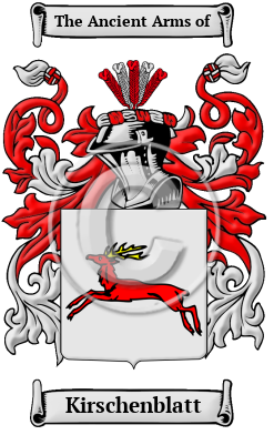 The name Kirschenblatt is derived from the Yiddish words "kirsch," meaning "cherry," and "baum," meaning "tree." This name is more likely to have been ornamental in its origins, rather than actually a name given to someone who lived near a cherry tree. The surname Kirschenblatt is also a veiled form of the Jewish name "Gershon" or "Gershom."