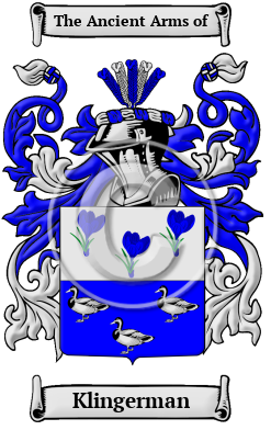 Germany Etymology of KlingermanWhat does the name Klingerman mean? The surname Klingerman is a local surname; more specifically, it is a topographical surname, derived from a feature of the physical geography near where the original bearer lived or held land. Checking further we found the name was derived from the Old German word for ravine or gorge. Early Origins of the Klingerman familyThe surname Klingerman was first found in Swabia, where this family made important contributions toward the development of this district from ancient times. Always prominent in social and political affairs, the family formed alliances with other families within the Feudal System and the nation. Individual bearers of this name first mentioned in ancient chronicles include Hugo der Clingere of Breisgau (c.1200,) Heydeke bei dem Clinghe of Quedlinburg in the Harz Mountains (c.1300,) Clingeler of Wuerttemberg (c.1283,) and Heincz in der Clingen of Wuerzburg (c.1409). Early History of the Klingerman familyThis web page shows only a small excerpt of our Klingerman research. Another 186 words (13 lines of text) covering the years 1752, 1812 and 1831 are included under the topic Early Klingerman History in all our PDF Extended History products and printed products wherever possible. Klingerman Spelling VariationsSpelling variations of this family name include: Kling, Klingel, Klinge, Klinger, Klingler, Klingen, Klingle, Klingele, Klinghe, Clinghe, Cling, Clingel, Clinge, Clinger, Clingere, Clingen, Clingle, Clingeler, Klingeler, Klinglin and many more. Early Notables of the Klingerman familyAnother 44 words (3 lines of text) are included under the topic Early Klingerman Notables in all our PDF Extended History products and printed products wherever possible.