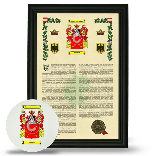 • Our most popular product, the Armorial, in a wooden Black Frame with an 8" Round Mouse Pad