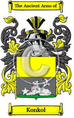 The surname Konkol was first found in Saxony, where the family contributed greatly to the development of an emerging nation. Individual bearers of the name first mentioned in ancient chronicles include Kunkerl of Pilgram (c.1379,) Dithart Kunkele (Konkel) of Giessen (c.1356,) and Johann Kunkelman of Merseburg (c.1488).