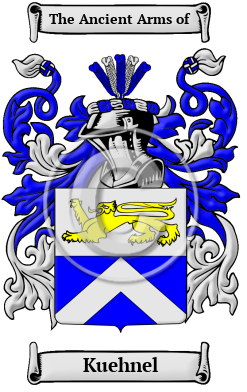 Germany Etymology of KuehnelWhat does the name Kuehnel mean? Similar to many Austrian family names, the distinguished surname Kuehnel is a proud sign of a rich and ancient ancestry. The earliest forms of hereditary surnames in Austria were the patronymic surnames, which are derived from the father's given name, and metronymic surnames, which are derived from the mother's given name. The patronyms were derived from a variety of given names that were of many different origins. The name Kuehnel is derived from the Old German name Conrad, which is composed of the elements "kuoni," meaning "daring" or "brave," and "rad," meaning "counsel." Early Origins of the Kuehnel familyThe surname Kuehnel was first found in Austria, where the family gained a significant reputation for its contributions to the emerging mediaeval society. The name became prominent as many branches of the family founded separate houses and acquired estates in various regions, always elevating their social status by their great contributions to society. Early History of the Kuehnel familyThis web page shows only a small excerpt of our Kuehnel research. Another 240 words (17 lines of text) covering the years 1540, 1645, 1687, 1700, 1726, 1748, 1770, 1775, 1806, 1849 and 1857 are included under the topic Early Kuehnel History in all our PDF Extended History products and printed products wherever possible. Kuehnel Spelling VariationsMany cultural groups lived in the German states in medieval times. Each had its own dialect and traditions, and unique variations of popular names. Low German, which is similar to contemporary Dutch, was spoken in Westphalia. German names are characterized by additions such as regional suffixes and phrases that tell something about the origin or background of its original bearer. Further contributing to the variation in German names was the fact that there were no spelling rules in medieval times: scribes recorded names according to their sound. The recorded spelling variations of Kuehnel include Kuhn, Kuehn, Kuehne, Kuehnel, Cuhn, Cuehn, Cuehne and many more. Early Notables of the Kuehnel family- August Kuehnel (1645-c...