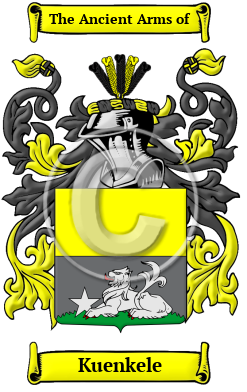 Germany Early Origins of the Kuenkele familyThe surname Kuenkele was first found in Saxony, where the family contributed greatly to the development of an emerging nation. Individual bearers of the name first mentioned in ancient chronicles include Kunkerl of Pilgram (c.1379,) Dithart Kunkele (Konkel) of Giessen (c.1356,) and Johann Kunkelman of Merseburg (c.1488). Early History of the Kuenkele familyThis web page shows only a small excerpt of our Kuenkele research. Another 224 words (16 lines of text) covering the years 1677, 1688 and 1690 are included under the topic Early Kuenkele History in all our PDF Extended History products and printed products wherever possible. Kuenkele Spelling VariationsSpelling variations of this family name include: Kunckel, Kunckle, Kunckl, Kunkel, Kunkle, Kunkl, Kuenckel, Kuenckle, Kuenckl, Kuenkel, Kuenkle, Kuenkl, Kunkele, Kunckele, Kuenkele, Konkel, Koenkel, Koenckel, Konkele, Kuenkler, Kunkler, Kunckler, Kuenckler, Kunkerl, Kuenkerl and many more. Early Notables of the Kuenkele familyMore information is included under the topic Early Kuenkele Notables in all our PDF Extended History products and printed products wherever possible.