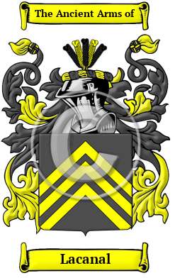 The surname Lacanal was first found in Normandy (French: Normandie), the former Duchy of Normandy, where the family has been a prominent family for centuries, and held a family seat with lands and manor. The family were well established in the region of Calvados and several members of the family distinguished themselves through their contributions toward the community in which they lived and were rewarded with lands, titles and letters patent confirming their nobility.