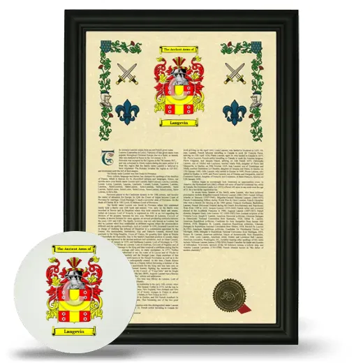 The Armorial will be framed with our custom solid 1" wood frame which beautifully compliments the earliest rendition of your Coat of Arms, Family Crest, and Surname History.