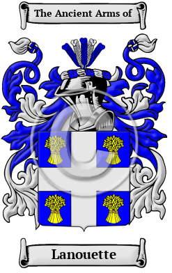 France Etymology of LanouetteWhat does the name Lanouette mean? The ancient history of the Lanouette name begins in the Middle Ages in the northern coastal region of Normandy. The name is derived from when the family resided in Brittany. Early Origins of the Lanouette familyThe surname Lanouette was first found in Brittany. Early History of the Lanouette familyThis web page shows only a small excerpt of our Lanouette research. Another 111 words (8 lines of text) covering the years 1152, 1569, 1578, 1617, 1669, 1740, 1793, 1812 and 1841 are included under the topic Early Lanouette History in all our PDF Extended History products and printed products wherever possible. Lanouette Spelling VariationsThroughout the course of history most surnames have undergone changes for many reasons. During the early development of the French language, a son and father may not have chosen to spell their name the same way. Many are simple spelling changes by a person who gave his name, phonetically, to a scribe, priest, or recorder. Many names held prefixes or suffixes which became optional as they passed through the centuries, or were adopted by different branches to signify either a political or religious adherence. Hence, we have many spelling variations of this name, Lanouette some of which are Lanouette, Lanoue, La Nouë, La Noue, Lanoux and others. Early Notables of the Lanouette familyJeanne de Lanoue, the founder of the 'Order of Hospitaller Sisters of the Providence', who was born in Saumur in 1669. René-Joseph de Lanoue, born around 1740 in Brittany and executed in Paris in 1793, was a general. Félix-Hyppolite Lanoue, born in... Another 41 words (3 lines of text) are included under the topic Early Lanouette Notables in all our PDF Extended History products and printed products wherever possible.