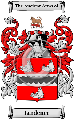 | Lardener History, Family Crest & Coats of Arms Etymology of LardenerWhat does the name Lardener mean? The ancient name Lardener is derived from the French word "lardiner," who was an 'officer in charge of a larder', also 'the officer who superintended the pannage of hogs in the forest'. 1 Early Origins of the Lardener familyThe surname Lardener was first found in Yorkshire, where Dauid Lardener, le Lardener, Lardiner was listed in the Pipe Rolls (1161-1181.) Later the Pipe Rolls included an entry for Thomas le Lardiner in 1193 in Surrey. 1 Davygate, established by the Norman kings of England was in the Forest of Galtres in the city of York. Its named after David Le Lardiner, whose father, John the Lardiner, was the Royal Lardiner (steward of the larder), for the Forest of Galtres, a title which became hereditary in the family. Early History of the Lardener familyThis web page shows only a small excerpt of our Lardener research. Another 129 words (9 lines of text) covering the years 1170, 1193, 1653, 1684, 1700, 1701, 1740, 1768, 1769 and 1793 are included under the topic Early Lardener History in all our PDF Extended History products and printed products wherever possible. Lardener Spelling VariationsUntil quite recently, the English language has lacked a definite system of spelling rules. Consequently, Anglo-Saxon surnames are characterized by a multitude of spelling variations. Changes in Anglo-Saxon names were influenced by the evolution of the English language, as it incorporated elements of French, Latin, and other languages. Although Medieval scribes and church officials recorded names as they sounded, so it is common to find one person referred to by several different spellings of his surname, even the most literate people varied the spelling of their own names. Variations of the name Lardener include Lardner, Lardiner, Ladner, Lardnar, Lardaner, Lardinar and many more. Early Notables of the Lardener familyAnother 40 words (3 lines of text) are included under the topic Early Lardener Notables in all our PDF Extended History products and printed products wherever possible. Migration of the Lardener family to IrelandSome of the Lardener family moved to Ireland, but this topic is not covered in this excerpt. Another 46 words (3 lines of text) about their life in Ireland is included in all our PDF Extended History products and printed products wherever possible. Migration of the Lardener familySearching for a better life, many English families migrated to British colonies. Unfortunately, the majority of them traveled under extremely harsh conditions: overcrowding on the ships caused the majority of the immigrants to arrive diseased, famished, and destitute from the long journey across the ocean. For those families that arrived safely, modest prosperity was attainable, and many went on to make invaluable contributions to the development of the cultures of the new colonies. Research into the origins of individual families in North America revealed records of the immigration of a number of people bearing the name Lardener or a variant listed above: Roger Lardner, who sailed to America in 1718; and Martin Lardner to New York in 1848. During the American Civil War Captain Lardner, commanding the Union battleship ".