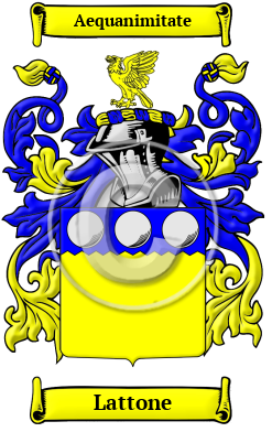 | Lattone History, Family Crest & Coats of Arms Etymology of LattoneWhat does the name Lattone mean? The ancestors of the name Lattone date back to the Anglo-Saxon tribes of Britain. The name is derived from when the Lattone family lived in Latham in the West Riding of Yorkshire, in Lathom in Lancashire and Laytham in the East Riding of Yorkshire. The place-name Latham was originally derived from the Old Norse word hlathum, which is the plural form of hlath, which means a barn. Therefore the original bearers of the Lattone surname were dwellers at the barns. 1 2 Early Origins of the Lattone familyThe surname Lattone was first found in Lancashire at Lathom, a village and civil parish about 5 km northeast of Ormskirk. The place name dates back to the Domesday Book of 1086 where it was listed as Latune 3 and later as Lathum in 1200, and Lathom in 1223. One of the earliest records of the name was Robert Fitzhenry de Lathom who held lands throughout south Lancashire in 1189. The lands were "bestowed by Robert de Lathom upon the newly-founded priory of Burscough in 1189." 4 Presumably one of his descendants, Robert de Lathom in 1292 was sued by Richard, son of John de Burscough concerning a tenement in Burscough, but the case was non-suited." 4 "This place was the seat of the Lathom family, of whom Robert de Lathom, in the reign of Edward I., received the grant of a weekly market and an annual fair, and whose baronial mansion of Lathom House, remarkable for its extent and magnificence, and formidable for its strength, afterwards became so conspicuous in history. " 5 At Whiston in the parish of Prescot, "in the reign of Richard II. the Lathoms had estates here, which descended through several generations; and the Torbocks, of whom the Lathoms were a branch, were, at a very remote period, possessed of Rudgate, in this manor." 5 The parish of Huyton was another ancient family seat. "The Lathoms were early proprietors, being mentioned in the reign of Henry III. The original church was of considerable antiquity, having been granted to the priory of Burscough, at the time of its foundation, by the first (aforementioned) Robert de Lathom." 5 Early History of the Lattone familyThis web page shows only a small excerpt of our Lattone research. Another 106 words (8 lines of text) covering the years 1200, 1610, 1677 and 1890 are included under the topic Early Lattone History in all our PDF Extended History products and printed products wherever possible. Lattone Spelling VariationsIt is only in the last few hundred years that the English language has been standardized. For that reason, early Anglo-Saxon surnames like Lattone are characterized by many spelling variations. As the English language changed and incorporated elements of other European languages, even literate people changed the spelling of their names. The variations of the name Lattone include: Latham, Lathem, Lathom and others. Early Notables of the Lattone familyAnother 35 words (2 lines of text) are included under the topic Early Lattone Notables in all our PDF Extended History products and printed products wherever possible. Migration of the Lattone family to IrelandSome of the Lattone family moved to Ireland, but this topic is not covered in this excerpt. Another 57 words (4 lines of text) about their life in Ireland is included in all our PDF Extended History products and printed products wherever possible. Migration of the Lattone familyMany English families tired of political and religious strife left Britain for the new colonies in North America. Although the trip itself offered no relief - conditions on the ships were extremely cramped, and many travelers arrived diseased, starving, and destitute - these immigrants believed the opportunities that awaited them were worth the risks. Once in the colonies, many of the families did indeed prosper and, in turn, made significant contributions to the culture and economies of the growing colonies. An inquiry into the early roots of North American families has revealed a number of immigrants bearing the name Lattone or a variant listed above: William Latham, who settled in Plymouth Massachusetts in 1620 after arriving on the "Mayflower"; Carey Latham settled came to New London Conn in 1630.