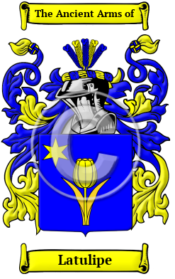France Etymology of LatulipeWhat does the name Latulipe mean? The name Latulipe has a long French heritage that first began in northwestern region of Brittany. The name is derived from when the family lived in Brittany. The name is also a soldier's name from a variant of French la tulipe ‘the tulip’, but this surname is virtually non-existing in France. Most, if not all, of the Latulippes are descendants of Michel Quéret dit Latulippe from Aix-en-Provence, France, who arrived in Quebec, Canada in 1691. Early Origins of the Latulipe familyThe surname Latulipe was first found in Attilly, or in Aisne, in the district of Marteville. 1 Early History of the Latulipe familyThis web page shows only a small excerpt of our Latulipe research. Another 180 words (13 lines of text) covering the years 1831, 1851, 1859, 1871 and 1891 are included under the topic Early Latulipe History in all our PDF Extended History products and printed products wherever possible. Latulipe Spelling VariationsThroughout the course of history most surnames have undergone changes for many reasons. During the early development of the French language, a son and father may not have chosen to spell their name the same way. Many are simple spelling changes by a person who gave his name, phonetically, to a scribe, priest, or recorder. Many names held prefixes or suffixes which became optional as they passed through the centuries, or were adopted by different branches to signify either a political or religious adherence. Hence, we have many spelling variations of this name, Latulipe some of which are Latulipe, Latulippe and others. Early Notables of the Latulipe family- André Latulipe was a blacksmith in Saint-Basile-De-Portneuf in 1891