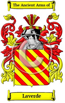 | Laverde History, Family Crest & Coats of Arms Early Origins of the Laverde familyThe surname Laverde was first found in the valleys of Maira, which lie south of Turin. The Berardi family can be traced back to this area, where they resided in the 12th century. Early History of the Laverde familyThis web page shows only a small excerpt of our Laverde research. The years 1320, 1387, 1442, 1445, 1495, 1640, 1719, 1850 and 1868 are included under the topic Early Laverde History in all our PDF Extended History products and printed products wherever possible. Laverde Spelling VariationsItalian surnames come in far more variations than the names of most other nationalities. Regional traditions and dialects are a decisive factor in this characteristic. For example, northern names tend to end in "o", while southern in "i". Also important, but not unique to Italy, was the fact that before dictionaries and the printing press most scribes simply spelled words according to their sounds. The predictable result was an enormous number of spelling variations. The recorded spellings of Laverde include Berardi, Berardo, Berardis, Beraldi, Beraldo, Beraudo, Verardi, Verardo, Veraldi, Veraldo, Veralli, Verallo, Velardi, Velardo, Vilardi, Vilardo, Berardelli, Berardini, Berardino, Berardinelli, Berardinetti, Berardocchi, Berarducci, Beraldini, Beraldin, Belardelli, Belardetti, Belardini, Belardinelli, Belardoni, Bellardino and many more. Early Notables of the Laverde familyGiovanni Berardi, an ecclesiastic in Tagliacozzo in the 13th century; Aldevrandino Beraldi was councillor of Treviso in the 14th century; Tommaso Beraldi was a judge and ambassador in Venice in 1320; Bartolomeo Beraldo was mayor of Castelfranco in 1387; Baldassarre Berardi was a castle owner in Dronero and was mayor of Alba in 1442; Costanzo Beraldi was senator of Rome in 1445 and mayor of Dronero and of the valleys around Maira; Alessandro Beraldi was a military captain in 1495 in Venice and died valiantly in the battle of Tauro; the Berardi family in Florence... Another 94 words (7 lines of text) are included under the topic Early Laverde Notables in all our PDF Extended History products and printed products wherever possible.