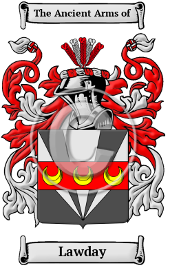 The surname Lawday was first found in Ayrshire (Gaelic: Siorrachd Inbhir Àir), formerly a county in the southwestern Strathclyde region of Scotland, that today makes up the Council Areas of South, East, and North Ayrshire, where they held a family seat on the lands of Lathis from very early times. The first recorded Chief of the name was Thomas Laithis "of that Ilk."