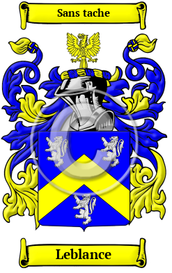 | Leblance History, Family Crest & Coats of Arms Etymology of LeblanceWhat does the name Leblance mean? The surname Leblance is derived from the French words "le" and "blanc", which translates to "the white." It was no doubt originally given to a man with white or blond hair and the feminine form, blanche, was usually given to a woman that possessed great beauty. 1 Early Origins of the Leblance familyThe surname Leblance was first found in Normandy (French: Normandie), the former Duchy of Normandy, where this ancient family were part of the Royal House of Blois and held a family seat with lands, titles, estates and manors. Members of this family were the hereditary Barons of Bailleul of Norman Conquest fame, and who assisted Duke William of Normandy, head of the House of Blois, in his conquest of England in 1066. Members of this distinguished and Royal family branched to many locations throughout Europe and amongst the locations were: Silesia, Holland, Italy and Britain. The earliest record of the name Blanch occurred in Normandy between 1180-95 with William Blanc and Robert and John Blanche. 2 Another early finding of the name was Blanche of Navarre (1226-1283), also known as Blanche of Champagne, was the daughter of Theobald the Troubador, King of Navarre and Count of Champagne, and his second wife Agnes of Beaujeu. Blanche of Navarre (French: Blanche d'Évreux) (1330-1398) was Queen consort of France as the wife of King Philip VI of France. Blanche I (1387-1441) was Queen of Navarre from 1425 to 1441 and her daughter Blanche II of Navarre (1424-1464), was titular Queen of Navarre (1461-1464) and by marriage Princess of Asturias. Another source also claims that the name could come from the Vendée, a department in western France and the town of Noirmoutiers, an island off of the west coast of France. 1 The name Blanche was first recorded in the western part of France with two former noble families. In Britain, Colin Blanche was a member of the house of the Duchess in 1400, Jean, was an armed archer for the Duc in 1420, and François, was a man involved in an armed watch of the city of Dinan in 1489. 3 The noble family with the name Blanche in Normandy and in Maine was maintained in the 1666 election around the time that Philippe was the Archbishop of Tours. The names including the article, such as Le Blanc, were most commonly seen in Northern France. 4 Jean Leblanc, born in 1620, was the son of Clement Leblanc and Anne Fevre. He was one of the first ancestors with the name Leblanc found in Canada. Jean married Euphrasie-Madeleine Nicolet on 21st November 1643 and together they had seven children. 5 Early History of the Leblance familyThis web page shows only a small excerpt of our Leblance research. Another 128 words (9 lines of text) covering the years 1572, 1602, 1700, 1718, 1778 and 1788 are included under the topic Early Leblance History in all our PDF Extended History products and printed products wherever possible. Leblance Spelling VariationsFrench surnames were subject to numerous spelling alterations depending on the region and time it was used. The early development of the French language relied heavily on borrowing elements and grammar from other languages. For example, Old French was infused with Germanic words and sounds when barbarian tribes invaded and settled in France after the fall of the Roman Empire. Middle French also borrowed heavily from the Italian language during the Renaissance. As a result of these linguistic and cultural influences, the name Leblance is distinguished by a number of regional variations. The many spelling variations of the name include Leblanc, Lebland, Leblang, Le Blanc, Blanc, Blanche, Blanchet, Blancheteau, Blancheton, Blanchonnet, Blanchot, Blanchaud, Blanquet, Blancot, Bianchi, Blanchecappe, Blanchecotte, Le Blank, Blank, Blanque, Blanke, Blancke and many more. Early Notables of the Leblance familyAnother 41 words (3 lines of text) are included under the topic Early Leblance Notables in all our PDF Extended History products and printed products wherever possible. Migration of the Leblance familyApproximately 110 years after the first landings by Cartier, there were only about 300 people in Quebec. France gave land incentives for 2,000 migrants during the next decade. Early marriage was desperately encouraged amongst the immigrants. The fur trade attracted migrants, both noble and commoner. 15,000 explorers left Montreal in the late 17th and 18th centuries. By 1675, there were 7000 French in Quebec. Migration to New France (Quebec) continued from France until it fell in 1759. In the year 1675 the Acadian presence in Nova Scotia, New Brunswick and Prince Edward Island had reached 500. In 1755, 10,000 French Acadians refused to take an oath of allegiance to England and were deported to Louisiana. The French founded Lower Canada, thus becoming one of the two great founding nations of Canada. The distinguished family name Leblance has made significant contributions to the culture, arts, sciences and religion of France and New France. Amongst the settlers in North America with this distinguished name Leblance were Anne, Catherine, Elizabeth, Desiré LeBlanc with his wife Marie, Jacques LeBlanc and with his wife Joseth, Simon LeBlanc with his wife Marie Joseph, and Jerome LeBlanc, who all settled in Oxford county in Quebec in 1763.