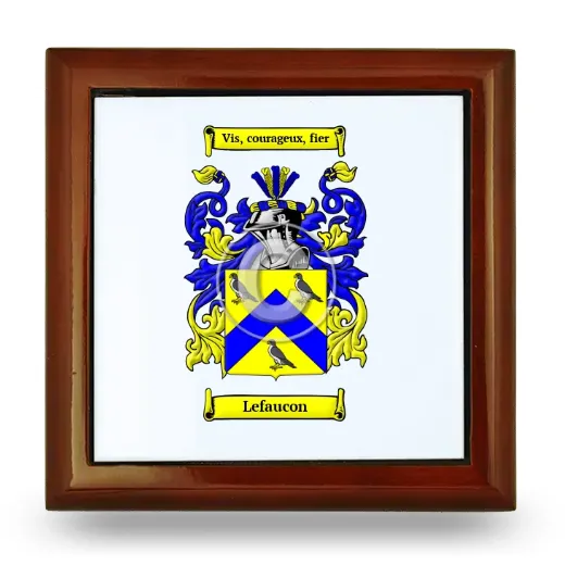 Made from the finest mahogany, this box has a brilliant lacquered cherry finish. Inside, you'll find cream-colored velvet. The hinged lid makes opening and closing this jewelry box easy. The Coat of Arms is heat-pressed onto a ceramic tile on the top of the box.
