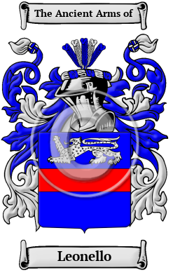 | Leonello History, Family Crest & Coats of Arms Etymology of LeonelloWhat does the name Leonello mean? The distinguished surname Leonello originated in an area of Italy, known as the Papal States. Although people were originally known only by a single name, it became necessary for people to adapt a second name to identify themselves as populations grew and travel became more frequent. The process of adopting fixed hereditary surnames was not complete until the modern era, but the use of hereditary family names in Italy began in the 10th and 11th centuries. Italian hereditary surnames were developed according to fairly general principles and they are characterized by a profusion of derivatives coined from given names. The most traditional type of family name found in the region of the Papal States is the patronymic surname, which is derived from the father's given name. During the Middle Ages, Italians adopted the patronymic system of name-making because it perfectly complemented the prevailing Feudal System. In Italy the popularity of patronymic type of surname is also due to the fact that during the Christian era, people often named their children after saints and biblical figures. The surname Leonello came from the given name Leoni which comes from the Latin Leo or Leonios, which means lion-like. Early Origins of the Leonello familyThe surname Leonello was first found in 1130, when Giovanni-Antonio Leoncilli owned much land around Spoleto. Early History of the Leonello familyThis web page shows only a small excerpt of our Leonello research. The years 1425, 1457, 1509, 1537, 1540, 1588, 1596 and 1675 are included under the topic Early Leonello History in all our PDF Extended History products and printed products wherever possible. Leonello Spelling VariationsIn comparison with other European surnames, Italian surnames have a surprising number of forms. They reflect the regional variations and the many dialects of the Italian language, each with its own distinctive features. For example, in Northern Italy the typical Italian surname suffix is "i", whereas in Southern Italy it is "o". Additionally, spelling changes frequently occurred because medieval scribes and church officials often spelled names as they sounded rather than according to any specific spelling rules. The spelling variations in the name Leonello include Leoni, Leone, Leon, Lioni, Lione, Lion, Liuni, Leo, Lio, De Leone, De Leonibus, De Leo, Di Leo, Leonelli, Leonello, Leoncilli, Lionelli, Lionello, Leonetti, Lionetti, Leoncini, Leoncino, Leonotti and many more. Early Notables of the Leonello familyBussadi Leoni, a noblewoman in Rome during the 15th century who married at age 12 and was known for her piety and charity. In 1425 she founded the Congregation of Women for Promoting Charitable Works. Domenico Leonessa of Naples became the Archbishop of Rossano in 1457. Leone Leoni was a medalist and sculptor born in Como in 1509. His talents became widely known and from 1537 to 1540 he was employed at the Papal mint. His son, Pompeo Leoni, also became a sculptor and medalist. He worked mainly in Spain, and collected Leonardo da... Another 93 words (7 lines of text) are included under the topic Early Leonello Notables in all our PDF Extended History products and printed products wherever possible.