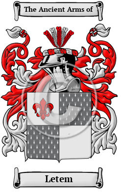 | Letem History, Family Crest & Coats of Arms Etymology of LetemWhat does the name Letem mean? The ancient and distinguished surname Letem hails from Lathom, Lancashire which dates back to the Domesday Book of 1086 where it was listed as Latune at that time. 1 Over the years the place name, evolved to Lathum in 1200, and Lathom in 1223. It derives its origin from Old Norse "hlaoa," literally meaning "a barn," whereas the place name means "at the barns." 2 The manor of Lathom was the most important of 17 manors held by Uctred, an Anglo-Danish landowner at the time of the Conquest in 1066. Early Origins of the Letem familyThe surname Letem was first found in Lancashire at Lathom, a township, in the parish and union of Ormskirk, hundred of West Derby. One of the first records of the family was Robert Fitzhenry de Lathom, who possessed lands throughout south Lancashire, extending to Flixton in the barony of Manchester. Robert de Latam was listed in the Assize Rolls for Yorkshire in 1204 and later, Henry de Latham was recorded in the Subsidy Rolls for Somerset in 1327. 3 "The seat of the Lathom family, of whom Robert de Lathom, in the reign of Edward I., received the grant of a weekly market and an annual fair, and whose baronial mansion of Lathom House, remarkable for its extent and magnificence, and formidable for its strength, afterwards became so conspicuous in history. This noble castle, which had eighteen towers, and was surrounded by a fosse eight yards in breadth, with a drawbridge defended by a lofty gateway tower, was twice besieged by the parliamentary forces during the reign of Charles I., of whose cause its owner was a resolute supporter." 4 Other records show Latham in the West Riding of Yorkshire could also be a point of origin for the family. Laytham is located the East Riding of Yorkshire. 3 "The Lathams are a very old and distinguished Cheshire and Lancashire family, that took its name from Lathom in Lancashire. Their Cheshire home was at Astbury from the 14th to the 16th century; afterwards they resided at Congleton." 5 "For six centuries they presided with little interruption over the civil government of Lancashire." 6 "The pedigree usually commences with Robert Fitz-Henry, Lord of Lathom, who between 1189 and 1199 founded Burscough Priory. The patronymical Fitz was continued until about the middle of the XIII. century, when the fixed surname of De Lathom was adopted." 6 Early History of the Letem familyThis web page shows only a small excerpt of our Letem research. Another 95 words (7 lines of text) covering the years 1296, 1618, 1740, 1750, 1761, 1788, 1789, 1795, 1796, 1837, 1843 and 1875 are included under the topic Early Letem History in all our PDF Extended History products and printed products wherever possible. Letem Spelling VariationsSpelling variations of this family name include: Letham, Lethem and others. Early Notables of the Letem familyJohn Latham (1740-1837), an English ornithologist, born 27 June 1740 at Eltham, Kent, where his father, John Latham, had long practised as a surgeon, and died 23 Aug. 1788. He was educated at Merchant Taylors' School, studied anatomy under Hunter, and practised medicine for many years at Dartford. He soon acquired a considerable fortune, and, retiring from practice in 1796, settled at Romsey, Hampshire. He received the degree of M.D. at Erlangen in 1795.