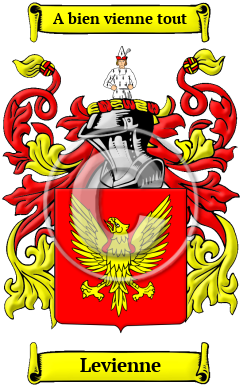 France Early Origins of the Levienne familyThe surname Levienne was first found in Burgundy (French: Bourgogne), an administrative and historical region of east-central France where this renowned family held a family seat since ancient times. Descendants of this family divided into numerous branches as they prospered and established themselves in various regions. The Mirebeau branch of the family was established by Jean Vienne, Lord of Mirebel-en-Montagne around 1283, and one of his descendants was the Chamberlain to the Duke in 1399. Another Jean de Vienne was the Admiral of France in 1373, but unfortunately, he was killed at Nicopolis in 1396. Many members of this family were granted lands and titles in recognition of their bravery and acts of heroism displayed on the battlefield. Philippe, Hugues V's son, was the founder of the branch of the family of Lords of Pimont, Ruffey and the Counts of Commarin, during the 1300's. Notable among this branch of the family are: Gérard, Knight of the Order of the King and of Queen Eléonore of Hungary, Knight of Honour in the Parliament of Dijon in 1515; Jean, Baron of Ruffey, Governor of Bourbonnais and a Knight of Orders; Jacques-François, Lieutenant-General in Bourgogne, and the father of Charles, Baron of Châteauneuf and of Chevreau, and the Lieutenant-General of armies; Henri, Count of Commarin and the Lieutenant-General of Commarin who resigned in 1671; and Louis-Henri, Count of Vienne and Colonel of the Cavalry who died in 1793. A distinguished author of his time, Joseph Marie Vien, known also as "the Elder," lived from 1716 to 1809. Other branches of this noble family include the Barons of Chevreau, the Pagny branch, the Lords of Rollans and of Listenois, the Barons of Clairvaux, and the Lords of Saint-Georges and of Sainte-Croix. The family were deeply religious and some members of the family joined the clergy. The Archbishops of Besançon and of Rouen, and the Priests of Langres and of Chalon were from this family. Jean Vien, born in 1648, son of Vivien-Jean and Suzanne (née Herault), travelled from France to Canada in the 17th century. After arriving in Quebec he married Catherine Gateau, born in 1651, daughter of Odart and Genevieve (née Drouet), on 29th November 1671. They remained together in Quebec and had children that all carried on the surname of Vien or Viens. 1 Early History of the Levienne familyThis web page shows only a small excerpt of our Levienne research. Another 98 words (7 lines of text) covering the years 1180, 1256 and 1373 are included under the topic Early Levienne History in all our PDF Extended History products and printed products wherever possible. Levienne Spelling VariationsSpelling variations of this family name include: Vienne, Viennes, Viene, Vienes, Vyenne, Vyennes, Vyene, Vyenes, Vien, Viens, Vyen, Vyens, Le Vienne and many more. Early Notables of the Levienne familyMore information is included under the topic Early Levienne Notables in all our PDF Extended History products and printed products wherever possible. Migration of the Levienne familySome of the first settlers of this family name or some of its variants were: Jean Vien settled in Quebec in 1774; and Pierre Viens settled in Quebec in 1778.